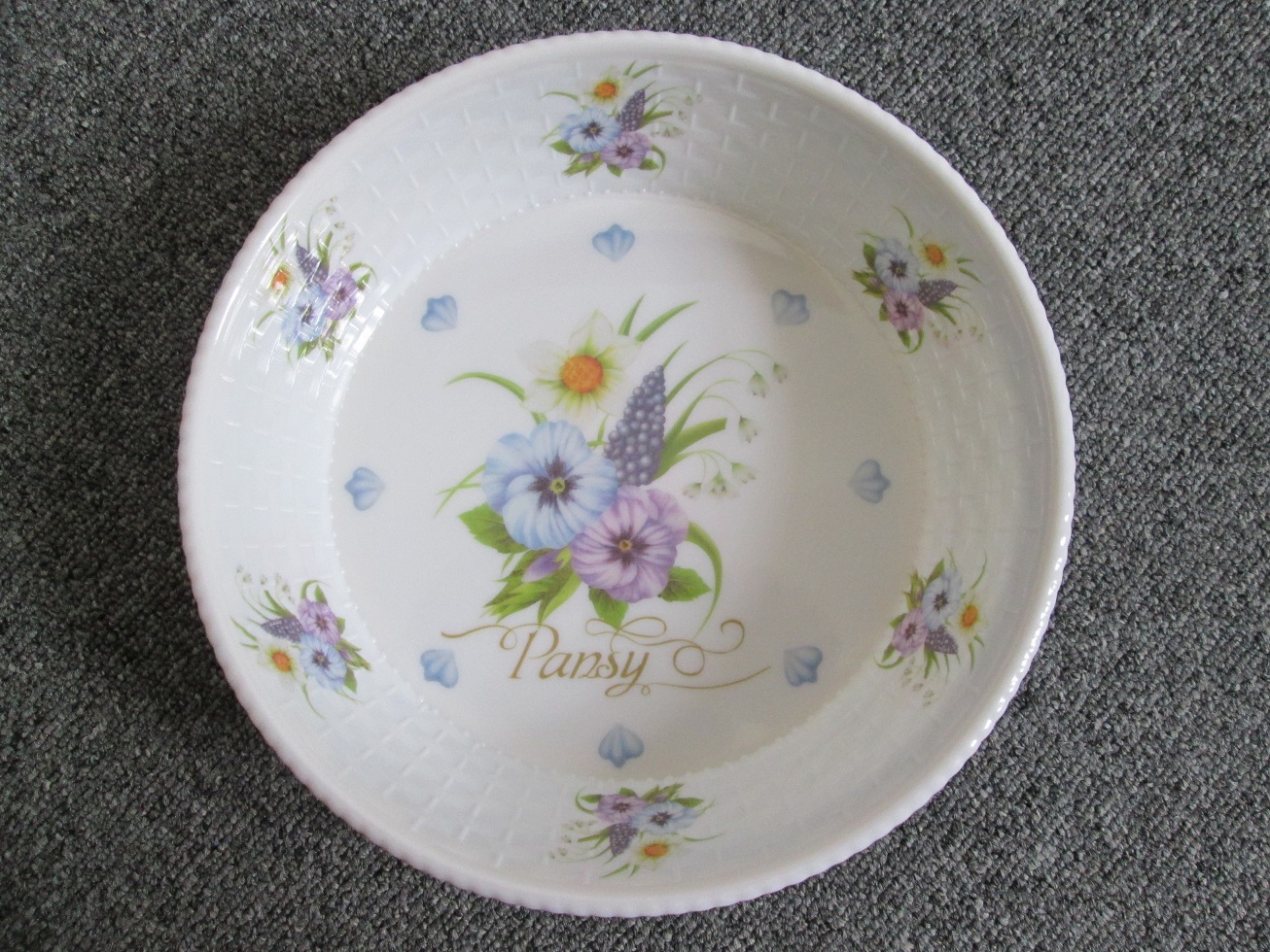 Popis: Bílá plastová miska o rozměrech 21 x 5 cm (rozměry se liší od údajů uvedených na etiketě) s barevným potiskem květin a nápisem Pansy. Na dně misky je vylisován text „MADE IN CHINA“ a nalepena etiketa. Na etiketě je mylně uveden název výrobku jako dekorativní tác v českém, slovenském, polském, maďarském, německém jazyce, neexistující EAN kód, neexistující jméno a adresa distributora, piktogram Zeleného bodu, symbol nabádající k šetrnému vztahu k životnímu prostředí (piktogram „basketbalisty“), recyklační symbol, přeškrtnuté symboly myčky, mikrovlnné trouby a vidličky a pohárku. Výrobek je prodáván nebalený.