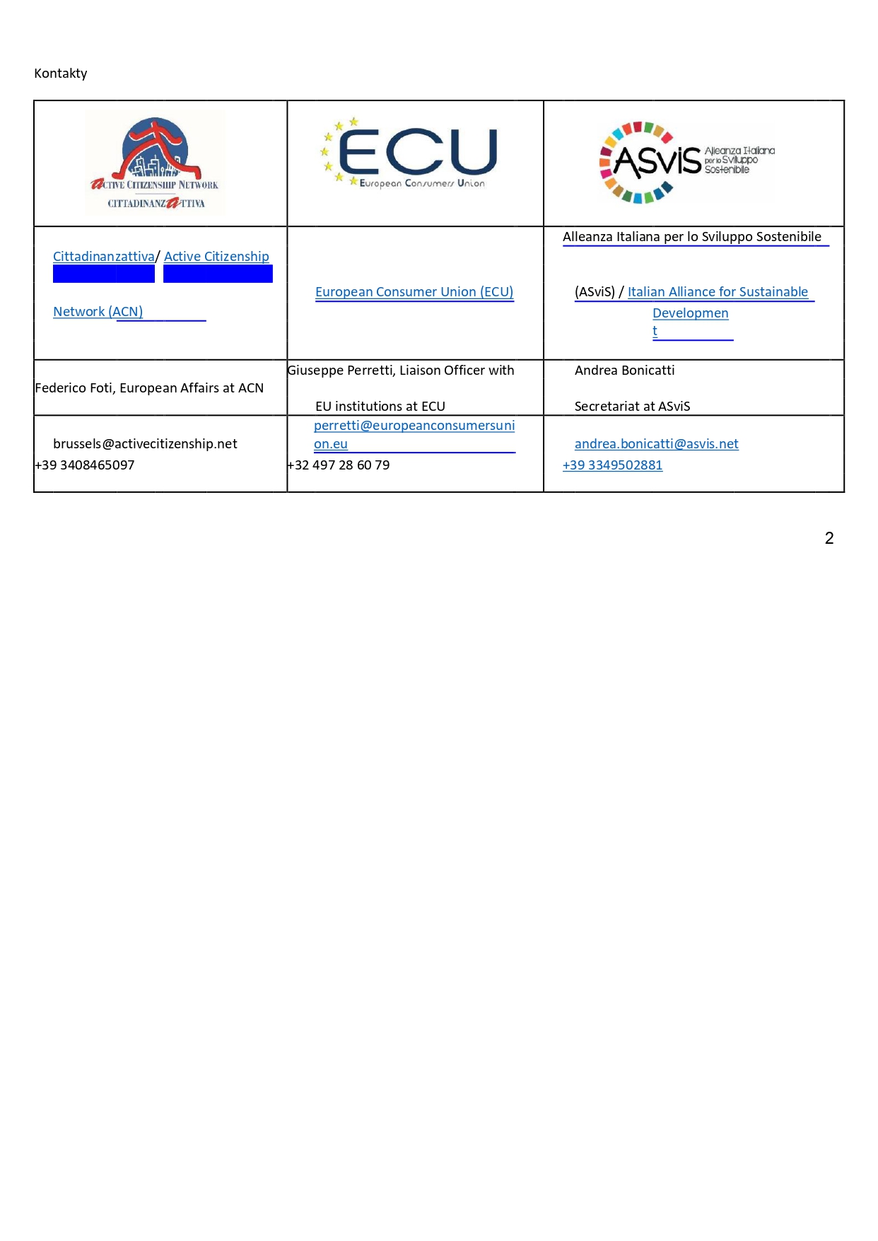 - Přispívání k posílení evropského občanství šířením informací o tom, jak nové modely odpovědné výroby a spotřeby překonají finanční omezení a směřují k evropskému udržitelnému hospodářství.